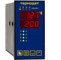 Четырехканальный ПИД-регулятор температуры, аварийный сигнализатор и позиционный регулятор со светодиодными индикаторами, исполнение в пластиковом корпусе.
